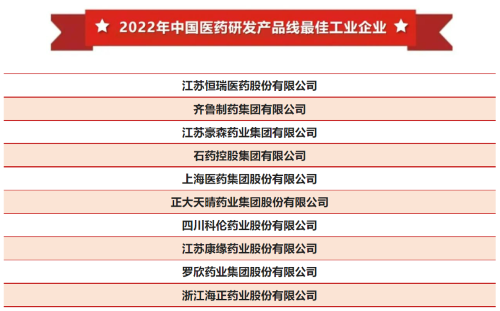 稳居榜首!AG真人平台医药再次登顶“中国医药研发产品线最佳工业企业”